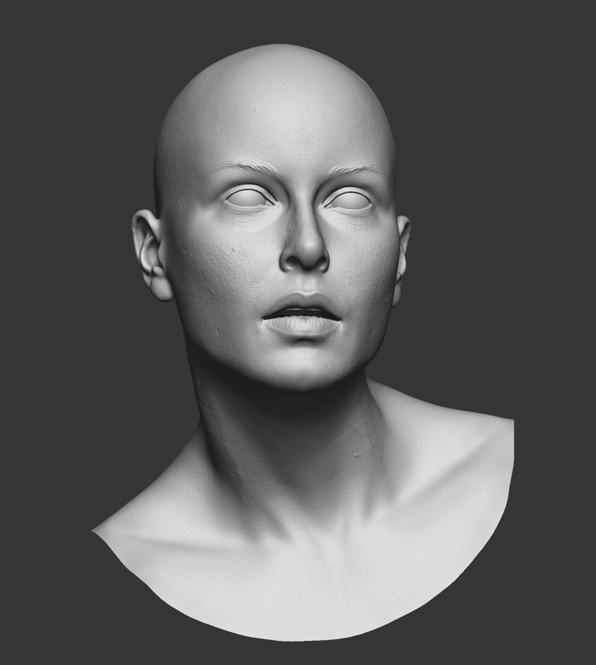 Anatomically accurate in shape and scale, extremely detailed (skin pores in a zbrush layer, so they can me removed for baking), clean and natural edgeflow, non overlapping unwrap, easy to optimize or modify. 2 morphs (open mouth, neck pose) are also stored in a zbrush layer.